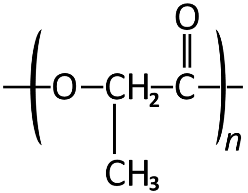 Structural formula of Poly lactic acid.