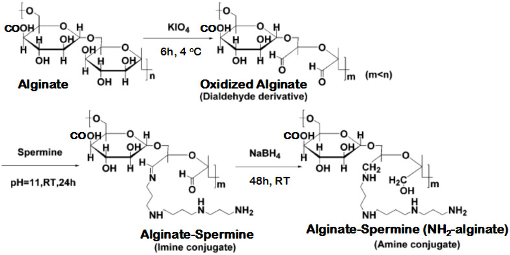 - Boontheekul, T.; Kong, H.J.; Mooney, D.J. Controlling alginate gel degradation utilizing partial oxidation and bimodal molecular weight distribution. Biomaterials 2005, 26, 2455–2465. [Google Scholar] [CrossRef] [PubMed]