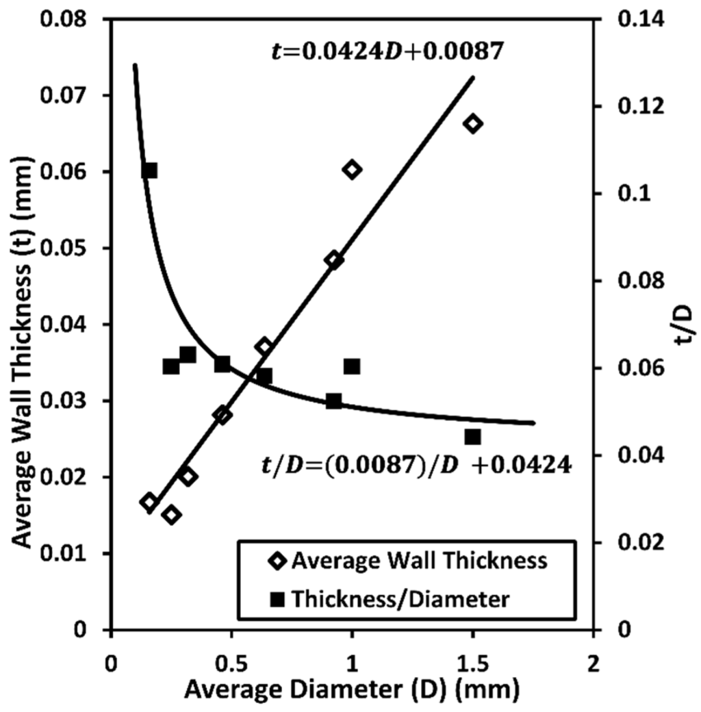 Figure 3 shows that though the average hollow sphere wall thickness increases with increasing sphere diameter, the
