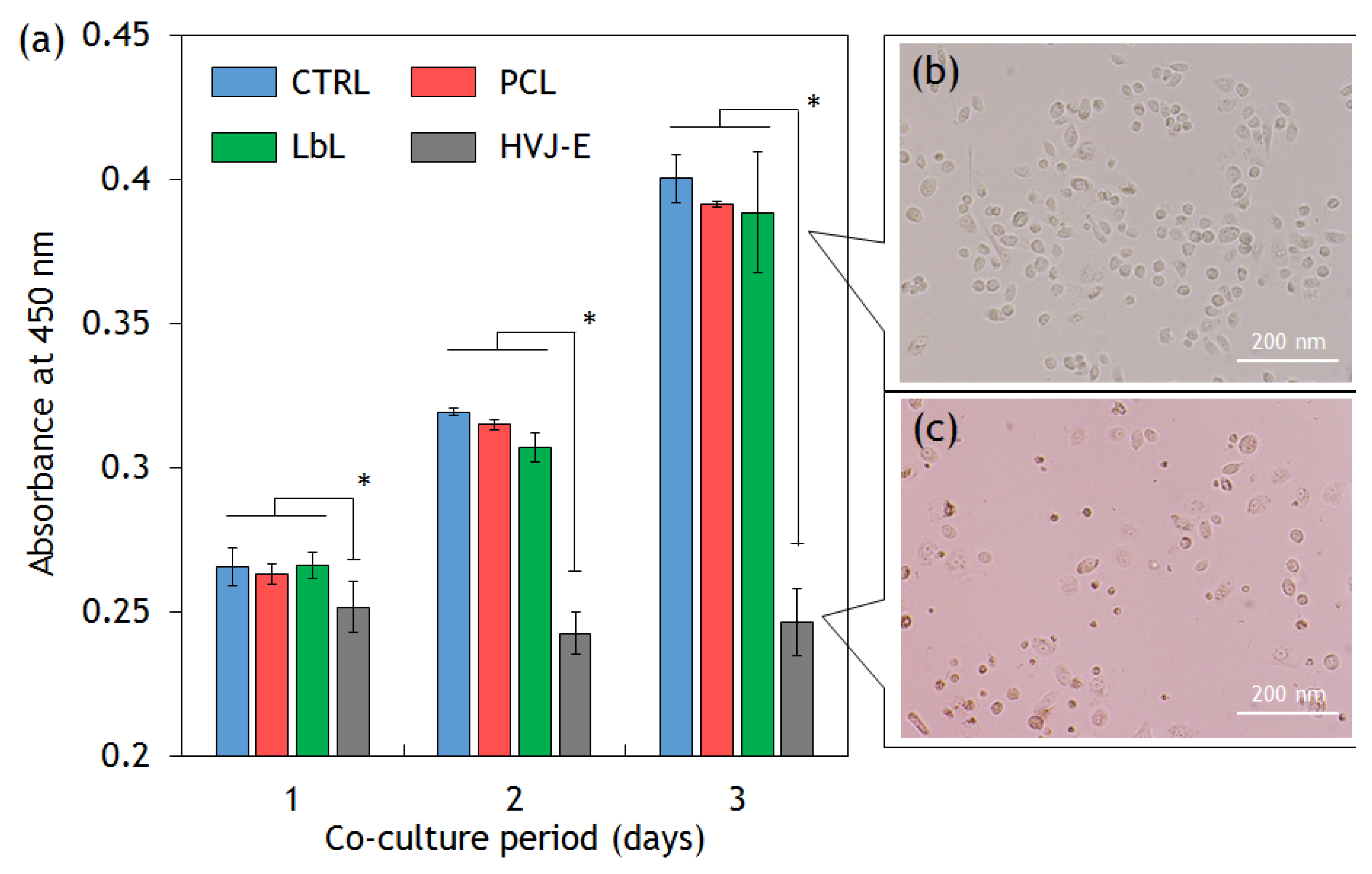 3.5. Characterization of PCL Nanofibers with/without HVJ-E Coating