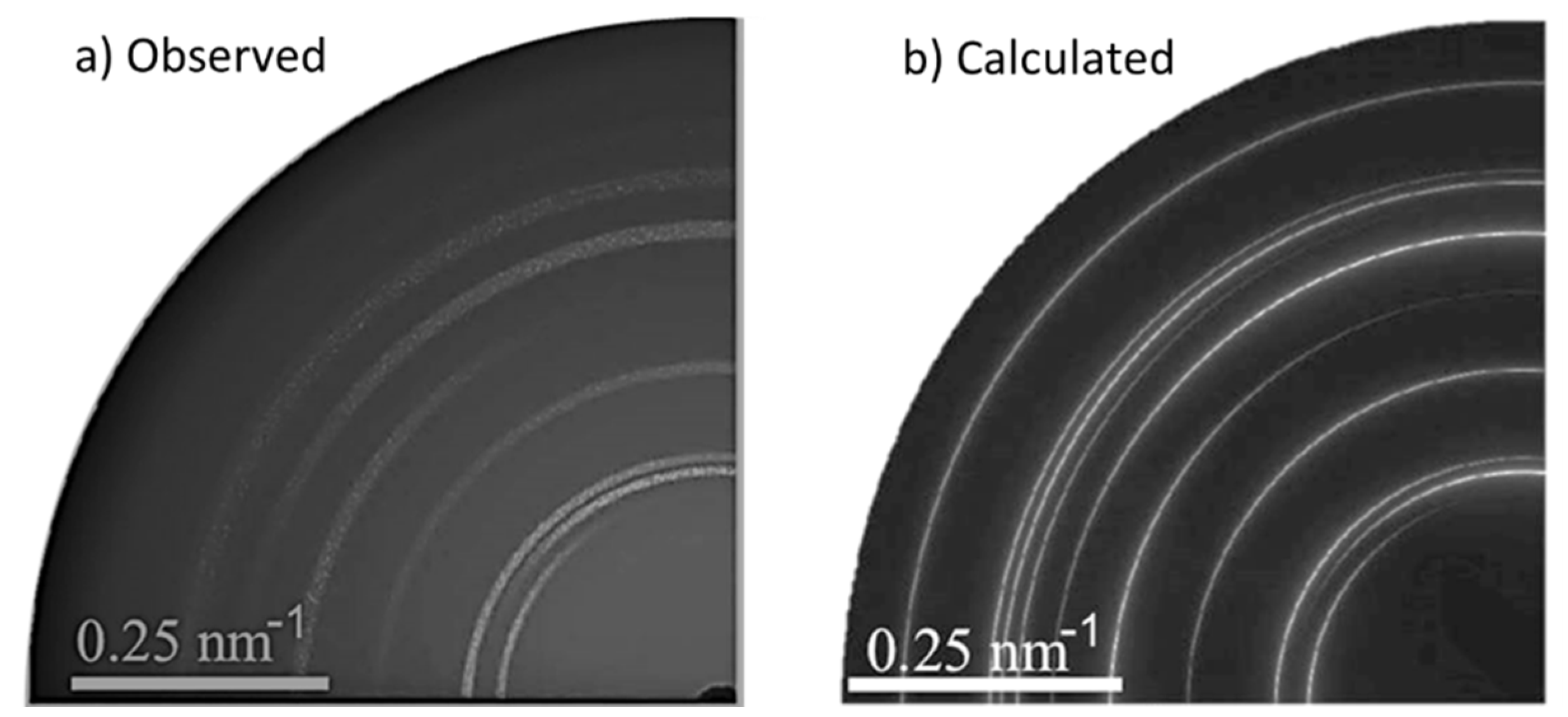 - Fuentes-Montero, L.; Montero-Cabrera, M.E.; Fuentes-Cobas, L. The software package ANAELU for X-ray diffraction analysis using two-dimensional patterns. J. Appl. Crystallogr. 2010, 44, 241–246. [Google Scholar] [CrossRef]