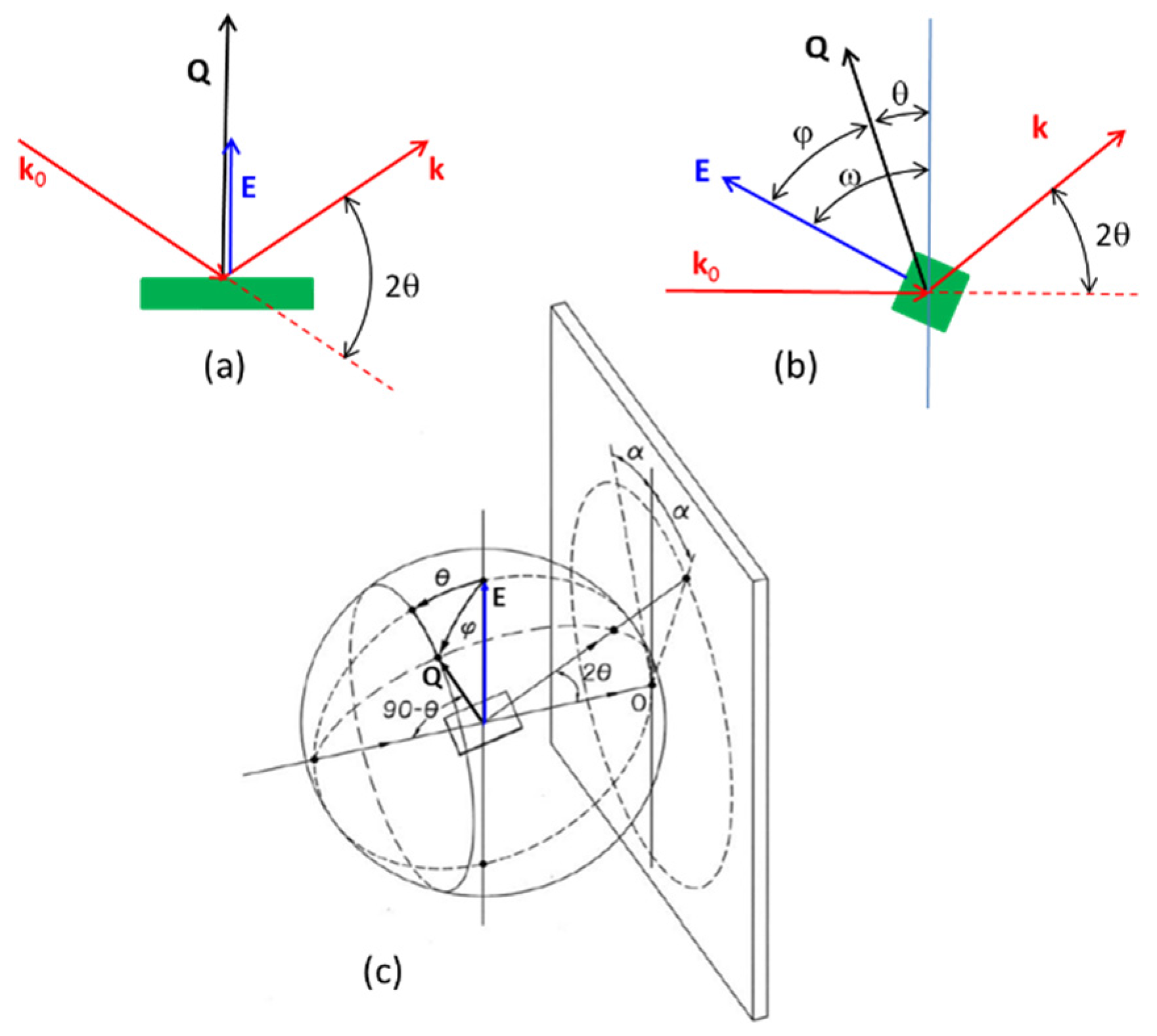 Angles between electric field E and scattering vector Q.