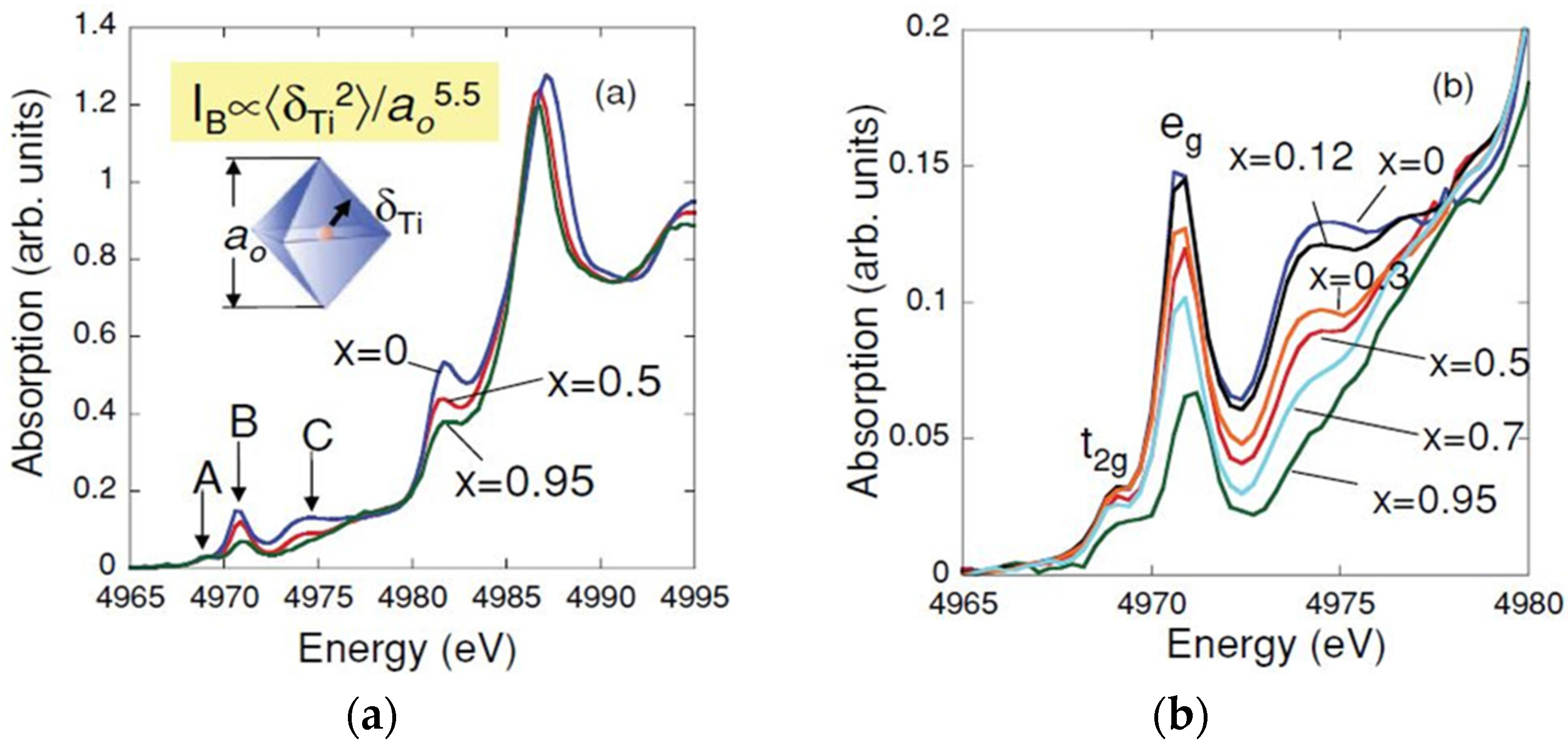 - Vedrinskii, R.V.; Kraizman, V.L.; Novakovich, A.A.; Demekhin, P.V.; Urazhdin, S.V. Pre-edge fine structure of the 3d atom K X-ray absorption spectra and quantitative atomic structure determinations for ferroelectric perovskite structure crystals. J. Phys. Condes. Matter 1998, 10, 9561–9580. [Google Scholar] [CrossRef]