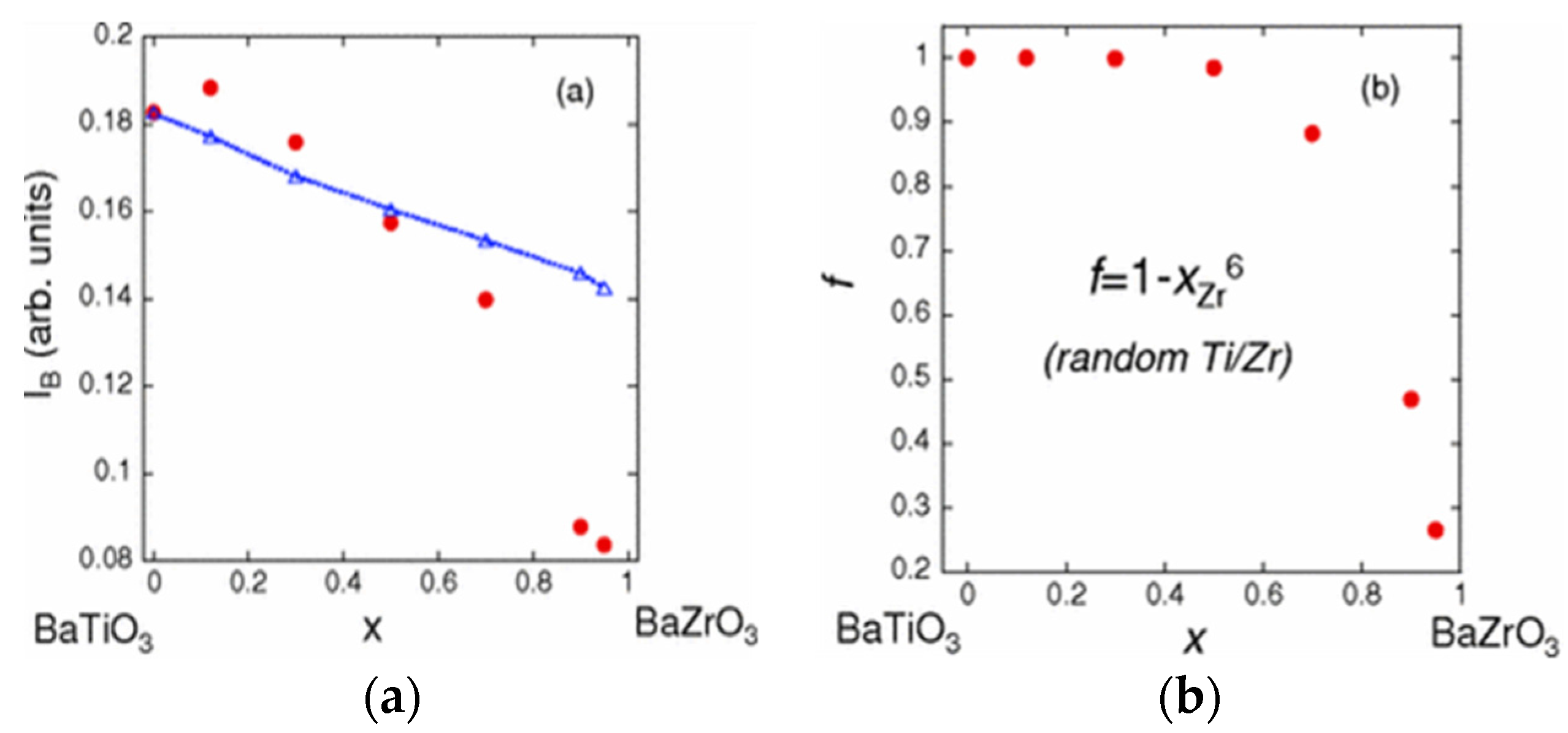 - Levin, I.; Cockayne, E.; Krayzman, V.; Woicik, J.C.; Lee, S.; Randall, C.A. Local structure of Ba(Ti,Zr)O3 perovskite-like solid solutions and its relation to the band-gap behavior. Phys. Rev. B 2011, 83. [Google Scholar] [CrossRef]