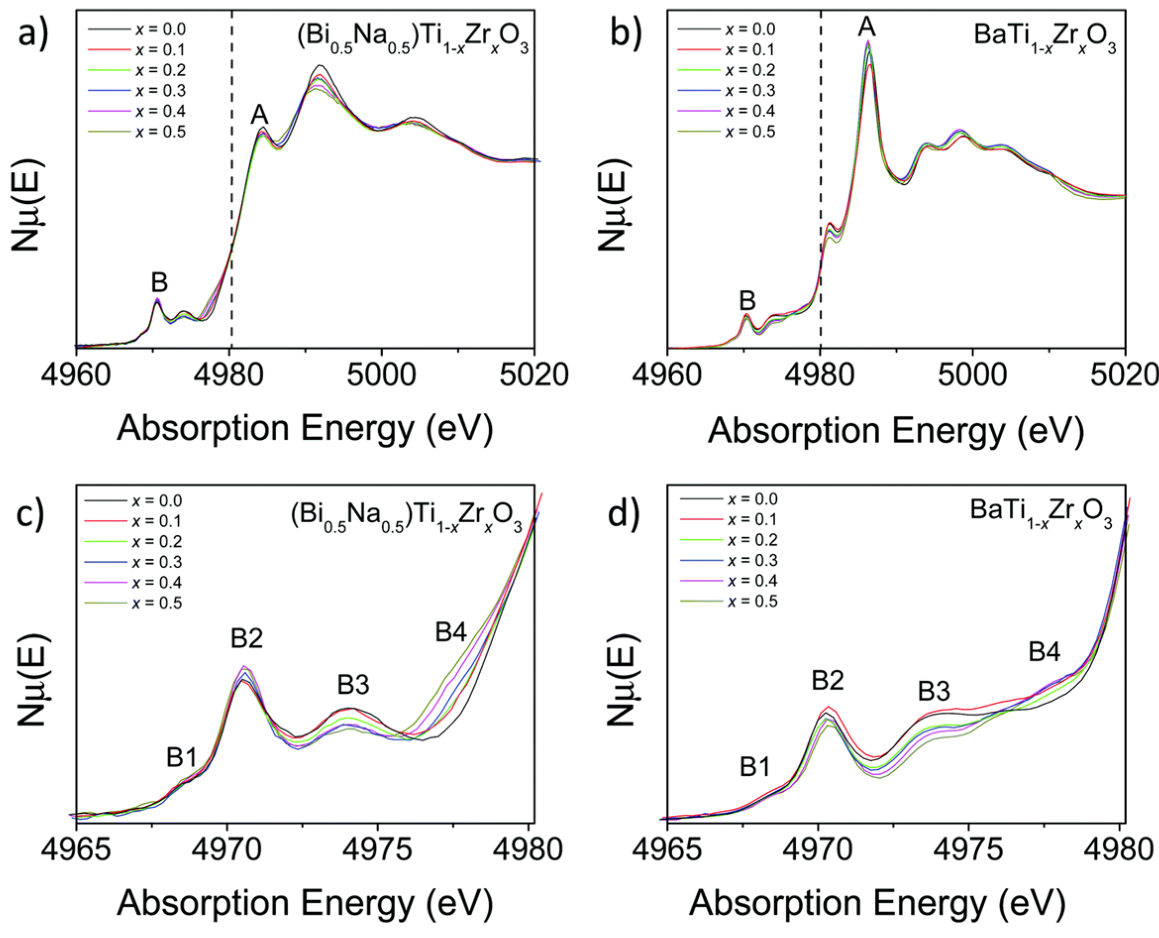 - Mesquita, A.; Michalowicz, A.; Mastelaro, V. XANES measurements probing the local order and electronic structure of Pb1−xBaxZr0.40Ti0.60O3 ferroelectric materials. J. Alloys Compd. 2015, 640, 355–361. [Google Scholar] [CrossRef]