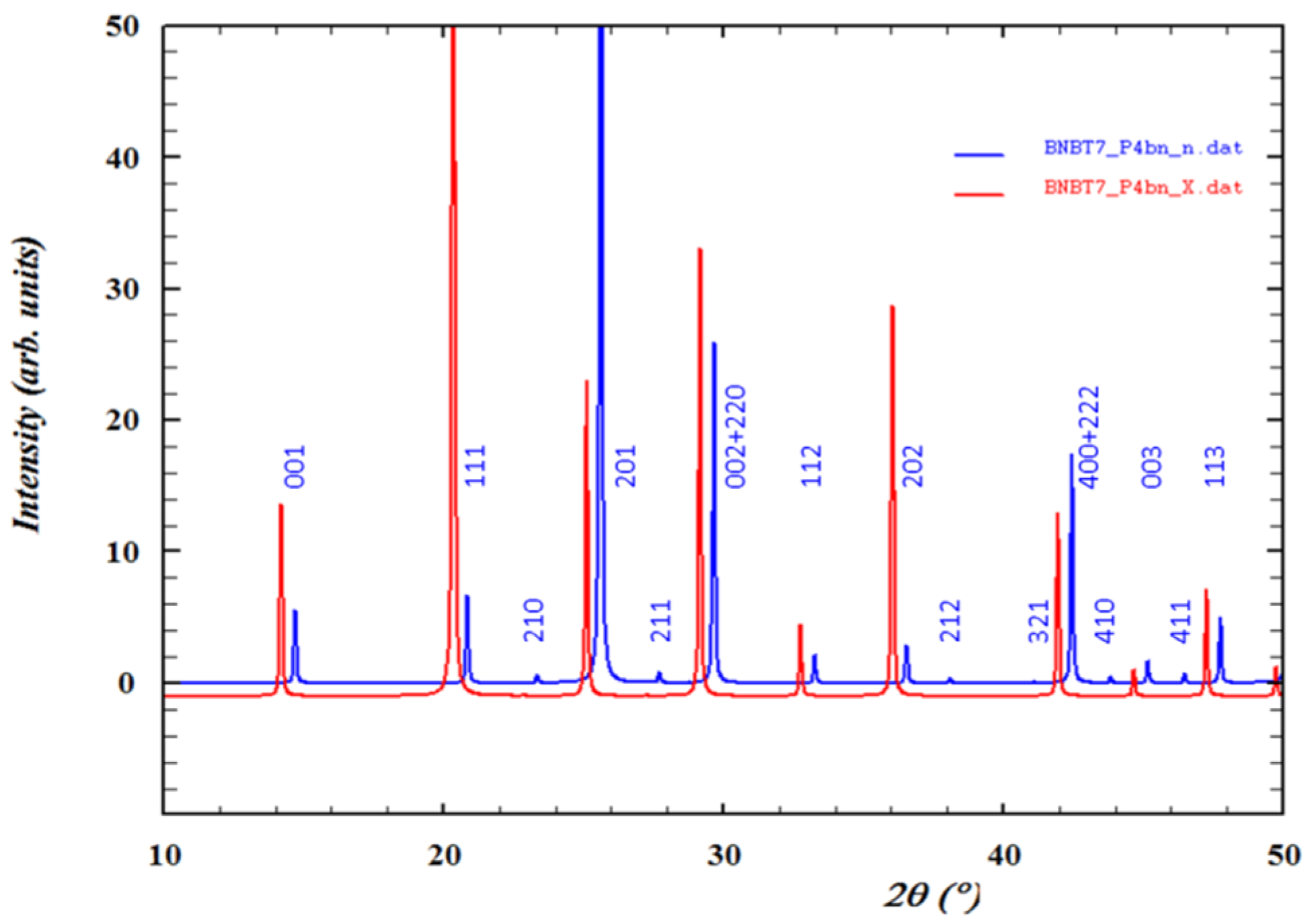 - Ranjan, R.; Dviwedi, A. Structure and dielectric properties of (Na0.50Bi0.50)1–xBaxTiO3: 0 ≤ x ≤ 0.10. Solid State Commun. 2005, 135, 394–399. [Google Scholar] [CrossRef]