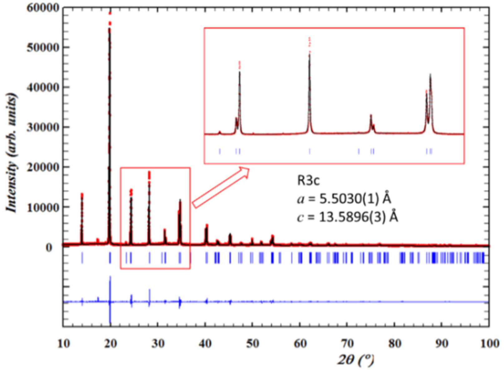 - Rodriguez-Carvajal, J. Recent developments of the prrogram FULLPROF. Comm. Powder Diffr. IUCr. Newsl. 2001, 26, 12–19. [Google Scholar]