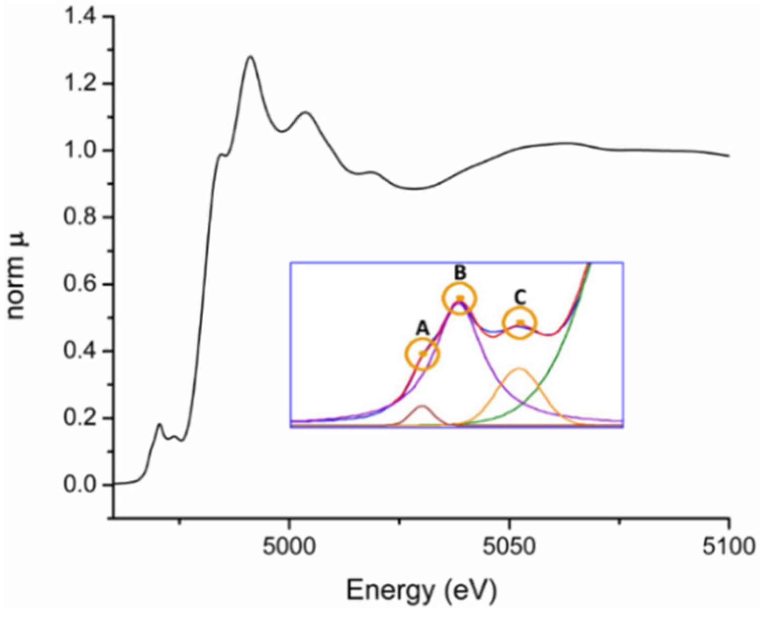- Yamamoto, T. Assignment of pre-edge peaks in K-edge X-ray absorption spectra of 3d transition metal compounds: electric dipole or quadrupole? X-Ray Spectrom. 2008, 37, 572–584. [Google Scholar] [CrossRef]
