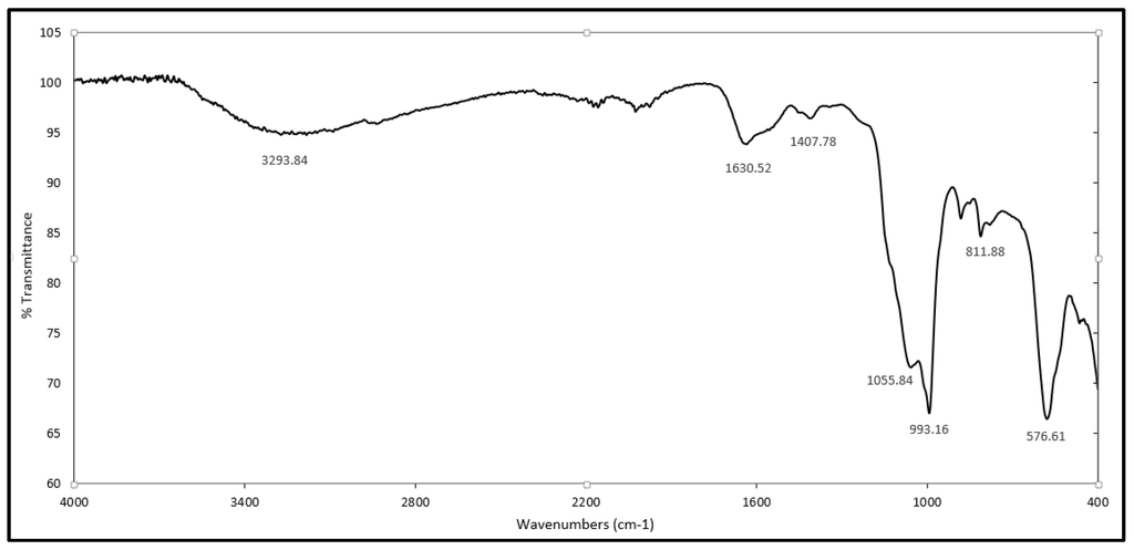 FT-IR and 1H-NMR spectroscopies were used in the identification of the γ-PGA produced. The spectrum shown is a mean of 3 spectra. The IR spectra (Figure 1) gave peaks specific to γ-PGA [1] with the strong amide absorption seen at wavenumbers of 1620.52 (cm−1). The peaks at 1407.78 (cm−1) and 1055.84 (cm−1) are representative of C=O and C-N groups respectively while the stretch seen at ~3293 (cm−1) is representative of the hydroxyl group.