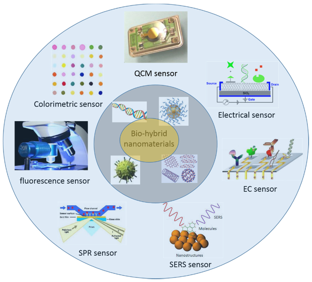 Potential sensor applications of the biomimetic hybrid nanomaterials.