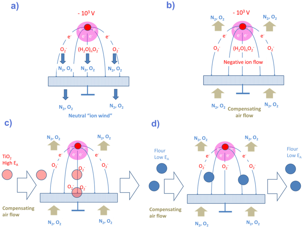 Reference to Table 2 reveals that the electron affinity of most air constituents is zero or negative, i.e., energy is required to form negative molecular ions by means of electron capture. The most abundant molecule with a positive EA in ambient air is oxygen (O2; EA ~0.5 eV). In case free electrons are available, O2− ions will therefore spontaneously form in clean ambient air: