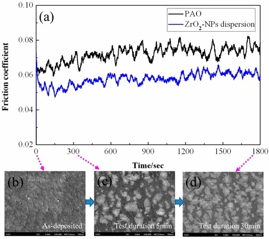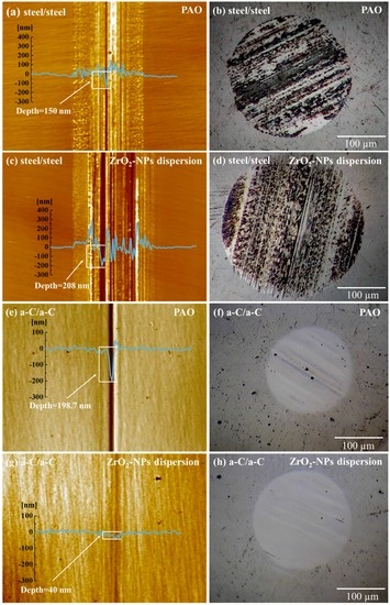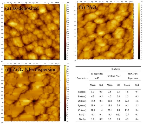3.2.1. The Characterizations of the Residual ZrO2-NPs on the Worn a-C Surface