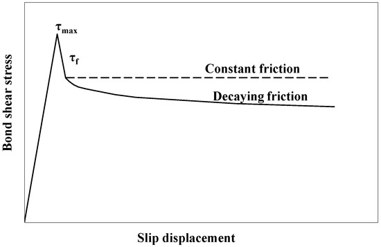 where is the maximum shear stress resisted at the interface; it covers the effect of both the internal bond and internal friction. is the critical slip displacement, when the bond is completely broken. is the internal frictional resistance, which is a property of the interface.