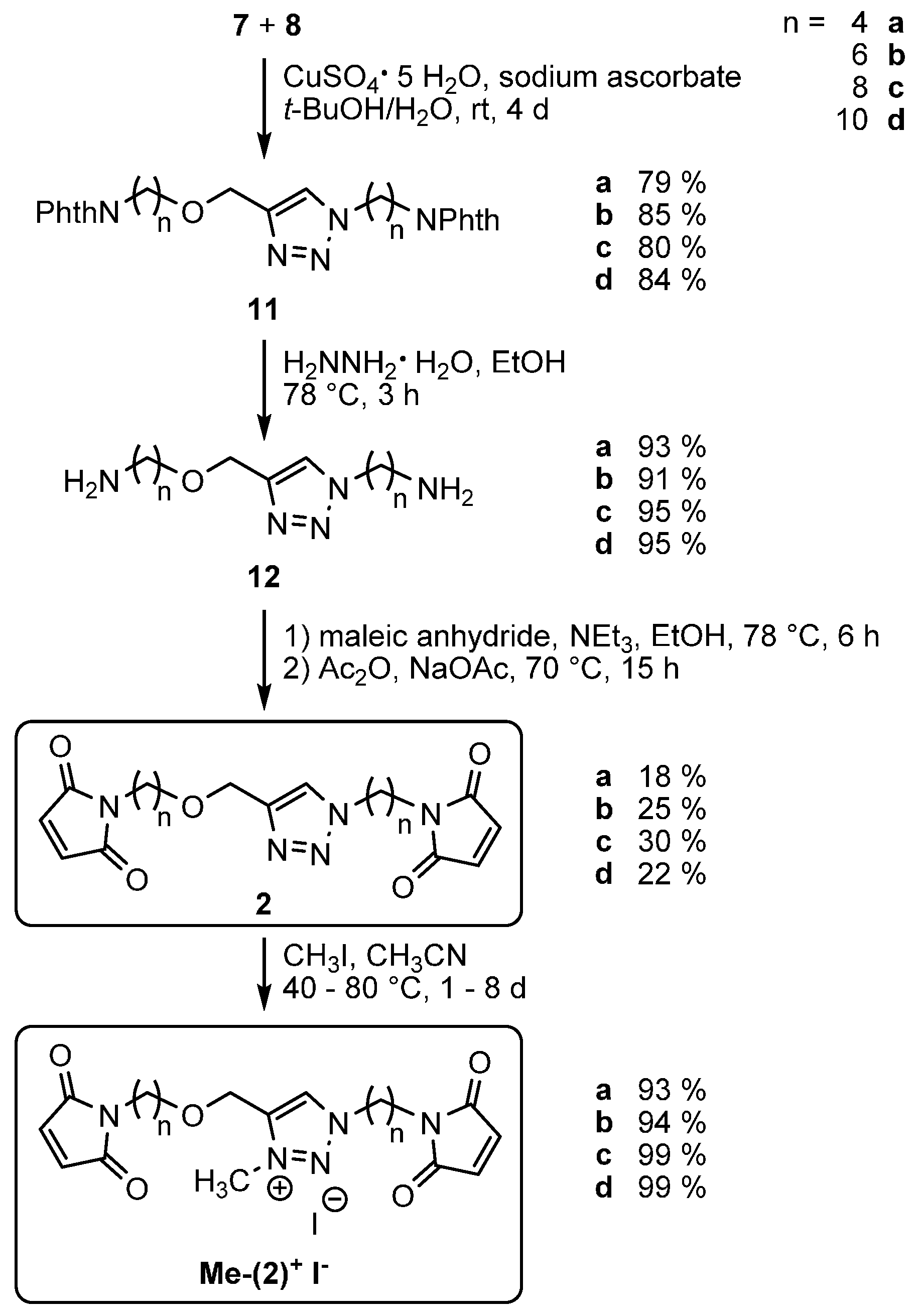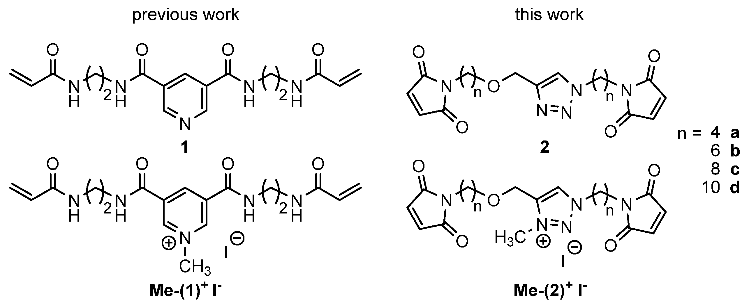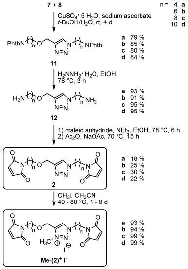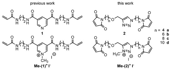 3.1. Synthesis of Maleimide Cross-Linkers 2 and Me-(2)+ I−