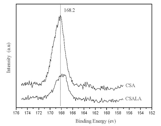 S 2p X-ray photoelectron spectroscopy (XPS) spectra of CSA and CSALA.