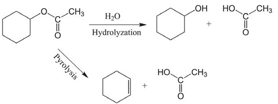 Cyclohexyl acetate hydrolysis and pyrolysis reactions.