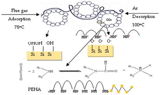 - Wei, L.; Gao, Z.M.; Jing, Y.; Wang, Y.D. Adsorption of CO2 from Simulated Flue Gas on Pentaethylenehexamine-Loaded Mesoporous Silica Support Adsorbent. Ind. Eng. Chem. Res. 2013, 52, 14965–14974. [Google Scholar] [CrossRef]