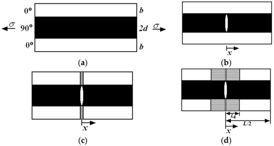 Upon first loading to fatigue peak stress σmax, which is greater than the initial cracking stress of transverse and longitudinal ply or yarn, it is assumed that transverse cracks and matrix cracks would extend throughout the entire laminate cross-section. The multicracking modes in the cross-ply or 2D woven CMCs can be classified into five different modes, as shown in Figure 1, including: [22]
