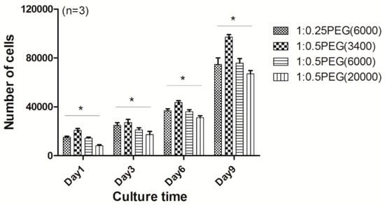 2.2. Synthesis of PEGDA with Different Molecular Weights