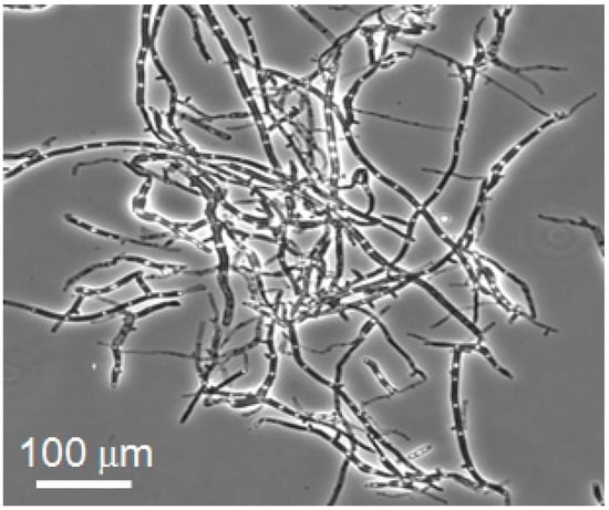The mycelial cells of F. oxysporum (Fusarium oxysporum) observed by an optical microscope.