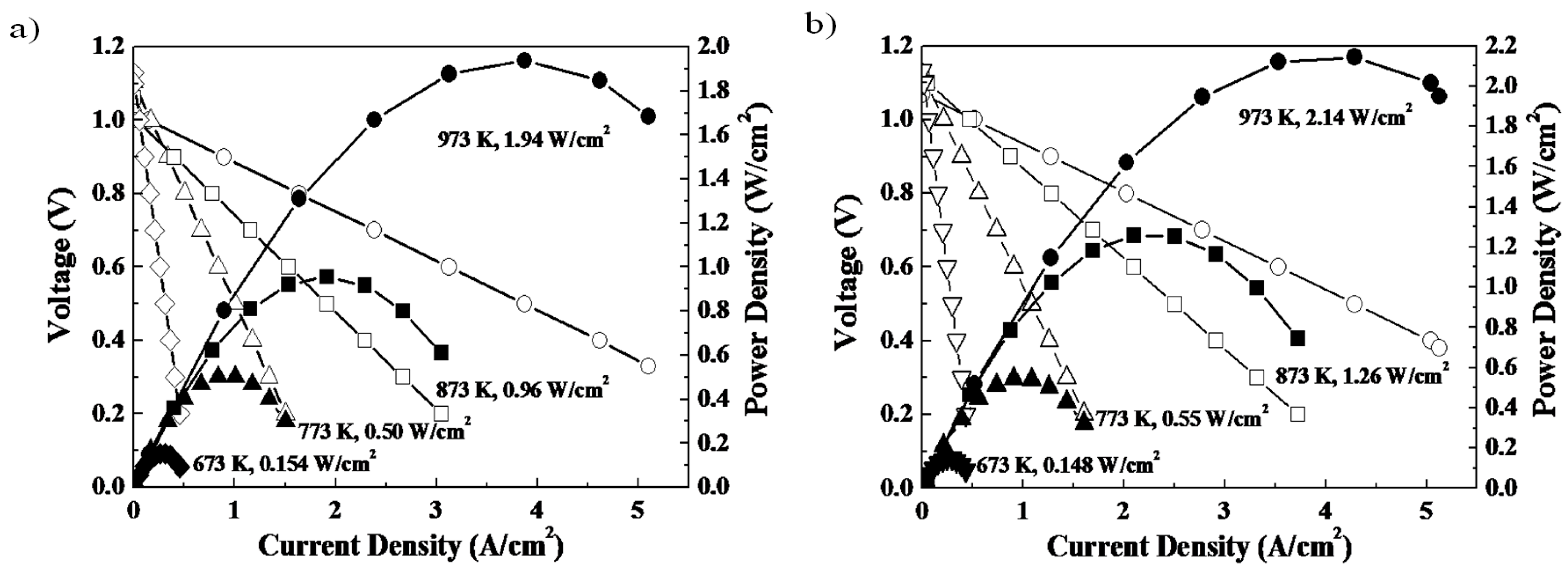 3]. Owing to YSZ’s limited ionic conductivity, early SOFCs operated at ~1273 K. While such high temperatures can boost the thermally-activated oxide ion transport, they also result in high cell costs, long start-up and shut down cycles, and unacceptable performance degradation rates. Therefore, at present, improvement in long term stability is an important issue for SOFC development. Contributing factors to power density degradation in SOFCs [