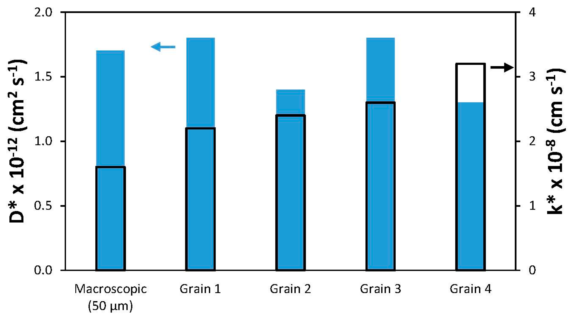 k* values within individual grains are slightly higher than the macroscopic