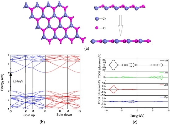 - Tu, Z.C. First-principles study on physical properties of a single ZnO monolayer with graphene-like structure. J. Comput. Theor. Nanosci. 2010, 7, 1182–1186. [Google Scholar] [CrossRef]