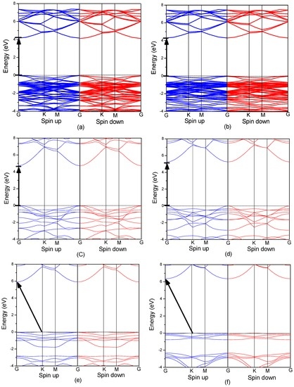 - Li, F.; Zhang, C.W.; Zhao, M.W. Magnetic and optical properties of Cu-doped ZnO nanosheet: First-principles calculations. Physica E 2013, 53, 101–105. [Google Scholar] [CrossRef]