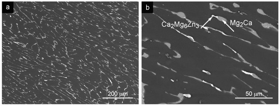 Many studies (see, for example, [6,9,13,16,19,20,23,25]) are focused on the influence of individual alloying elements on microstructural, mechanical and corrosion characteristics of Mg-Zn-Ca alloys, but only very few of the available sources give any information concerning the synergetic impact of alloying elements and processing technology on the resulting microstructure and mechanical properties.