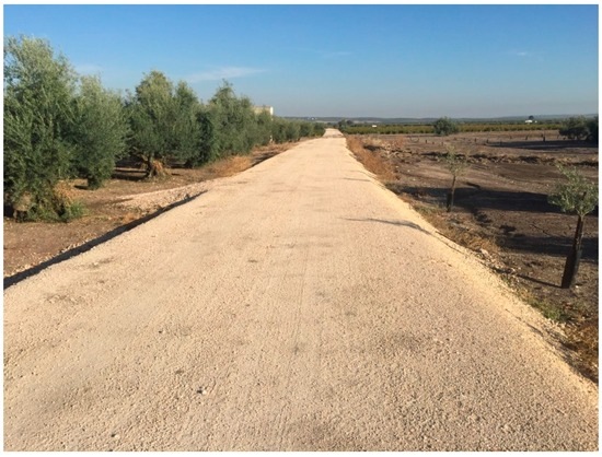 The experimental road used in these studies is located in southern Spain (Andalusia). This rural area has abundant clay soils with high water-holding capacity, making them suitable for agriculture. Nevertheless, these clays are expansive and cause numerous structural failures in pavements [24].