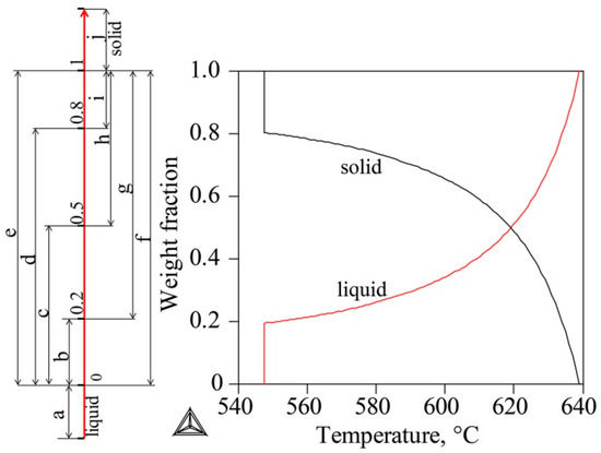 In order to clarify the refining mechanism of super gravity on the solidification structure of the Al-Cu alloy, super gravity of G = 800 was applied at different solidification stages of Al-8 wt % Cu alloy as shown in Figure 5, which charts the solid and liquid fraction change calculated via Thermo-Calc software using the Scheil-mode.