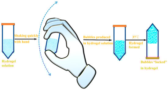 The non-floating hydrogel is the mixture of P407 and distilled water, and the P407 concentration was 45% (w/v). To prove that micro-bubbles could be produced by P407 solution and reserved in P407 solution, the P407 solutions was shaken by hand up and down at a speed of ≥2 round/s (Figure 1), and stored at 0 °C and 37 °C, respectively.