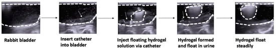 Rabbit was anesthetized with pentobarbital (30 mg/kg, intravenous injection). Floating hydrogel solution was intravesically instilled into bladder using a catheter. The floating hydrogel in bladder was detected by B ultrasound.