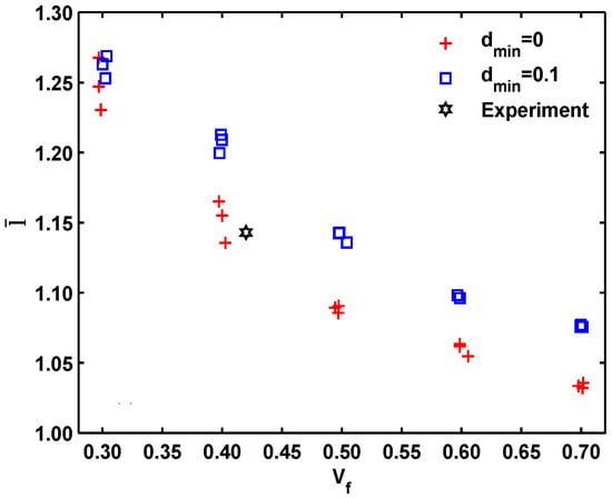 where Li is the nearest distance between the ith fiber and its neighbor, ri is the radius of the ith fiber and rinearest is the radius of the fiber which is nearest to the ith fiber. Given the same fiber volume, small values of are associated with heterogeneous patterns, while large values of indicate homogeneous patterns, and its variation can be seen as a measure of the fiber dispersion. In Figure 3, the data for two fiber structures are compared with Spitzig’s experimental measurement [23]. We can observe that, Spitzig’s experimental data is consistent with our data for the simulated fiber structure with dmin = 0, hence only the thermal conductivities of the simulated fiber structure with dmin = 0 are chosen as the research subject.