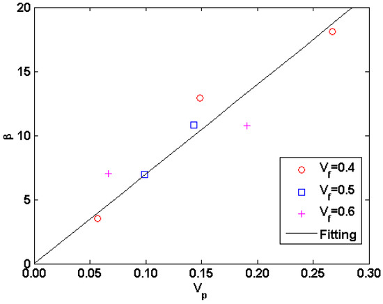 where β is a pore shape factor. The obtained β values are plotted in Figure 6. It is found that the fluctuation of β values is approximately increased with porosity throughout the entire porosity range. The values of β are estimated as β = 70Vp with R2 ≈ 0.88. Such high level of dispersion demonstrates that the thermal conductivity of the two-phase system could considerably be affected by the randomness of the geometry of the pores.