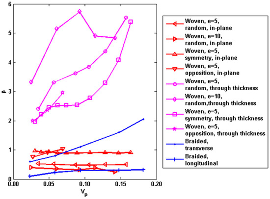 - Volume fraction of the bundle for the 2D and 3D composites, Vb
