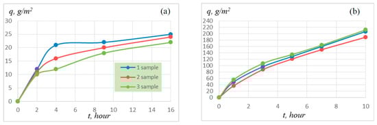 Specific sample mass increment at (a) 900 °C and (b) 1100 °C.