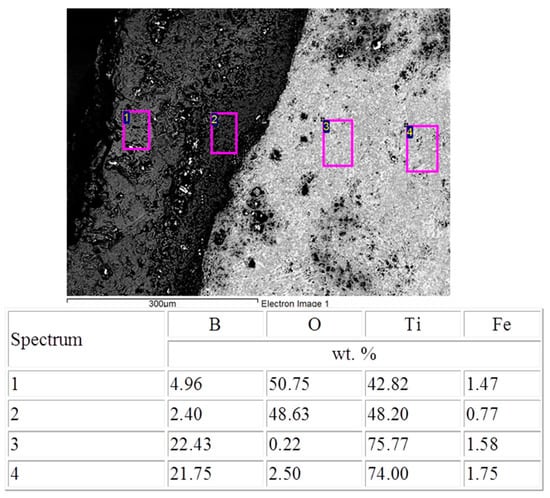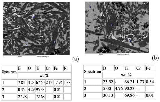One of the fields of boride application is the use of borides as a matrix material for metal-matrix composites [1,2,3]. Such composites combine the plasticity and the fracture toughness of a titanium matrix with a high strength, hardness, rigidity, and heat resistance. The fraction of ceramic alloys and composites based on titanium borides is constantly growing in rocket production, aviation engineering, and car industry, and they also have applications as biological implants and hard high-temperature coatings in various fields of engineering.