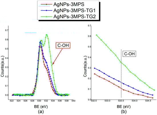 | AgNPs-3MPS | AgNPs-3MPS-TG1 | AgNPs-3MPS-TG2 | AgNPs-3MPS | AgNPs-3MPS-TG1 | AgNPs-3MPS-TG2 | |