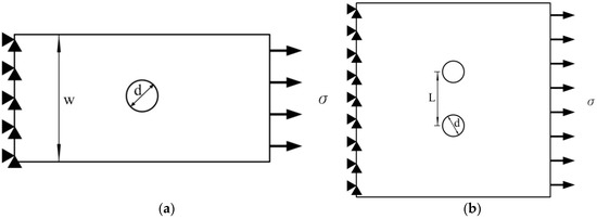 The conventional empirical formulas for the stress concentration factors of a finite-width thin specimen under tension with one, two and three circular holes are given by Equations (4)–(6), respectively. These three empirical formulas were proposed by Howland, Haddon, and Schulz, respectively, and are satisfactory for numerous design applications when structural defects caused by holes are ignored.