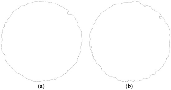 Results of processing images in Figure 3: (a) hole profile obtained at 2 A pulse current and (b) hole profile obtained at 3 A pulse current.