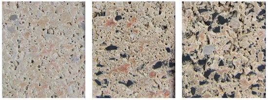 These waste-tire rubber percentages were established as the most convenient by a previous study [6]. The doped particles of rubber are visible in Figure 1.