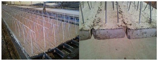 Lattice joists were originally made of conventional concrete (code HA-25-B-12-IIa). Scrap-tire rubber was incorporated as a top layer to obtain an elastic support for the hollow blocks (see Figure 4).