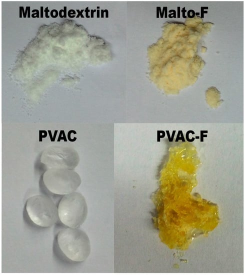 In summary, we conclude that, in the cases of PVAC and PVP, complexation of polymers by NH4F2H has occurred. Due to the low conductivity and fluoride concentration, as well as the presence of N atoms in the materials prepared (see Supplementary Materials Figure S3), we propose that NH4F2H has been incorporated into the polymer.