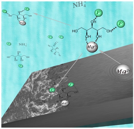 Excluding PVP-F, all of these new electrolytes appeared to function slightly better than the known PEG-based electrolytes. Tests on the anode of the batteries using scanning electron microscopy (SEM) and EDX spectroscopy, however, showed the formation of an MgF2 layer and, for the Xy-F electrolyte, larger amount of C and O. Traces of Mg were also detected at the cathode. We therefore hypothesize that the sugar-based electrolytes were more susceptible to the formation of Mg2+ complexes at the anode [43], which may decompose at the anode or remain in the electrolyte (Figure 8). In the case that this issue with dissolution of the anode remains, even once a new anodic material is realized, a protection layer on the anode would be necessary. Nevertheless, these electrolytes, especially the sugar-based electrolytes, offer an interesting approach for future and sustainable fluoride battery applications.