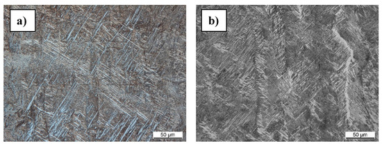 Metallographic cuts were prepared in order to investigate and compare the structure of the specimens. Figure 7 shows the microstructure of a specimen with standard process parameters and modified parameters. Both microstructures show a lamellar and a very fine β grain phase, which leads to the conclusion that the modified parameters have little effect on the solidification process.