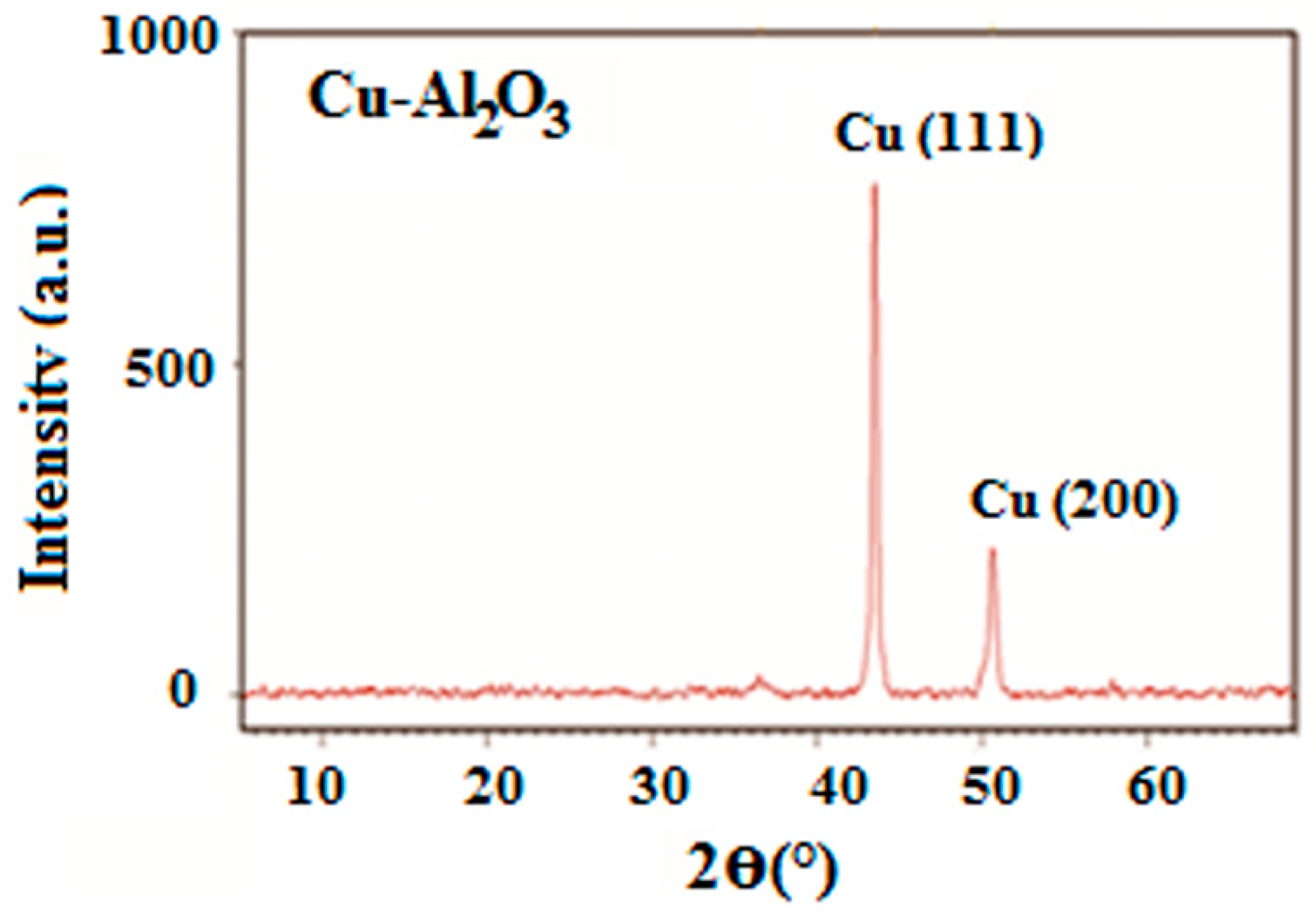 3.1. XRD Analysis of Pristine and Cu-Coated Al2O3 Powder and Composite Films