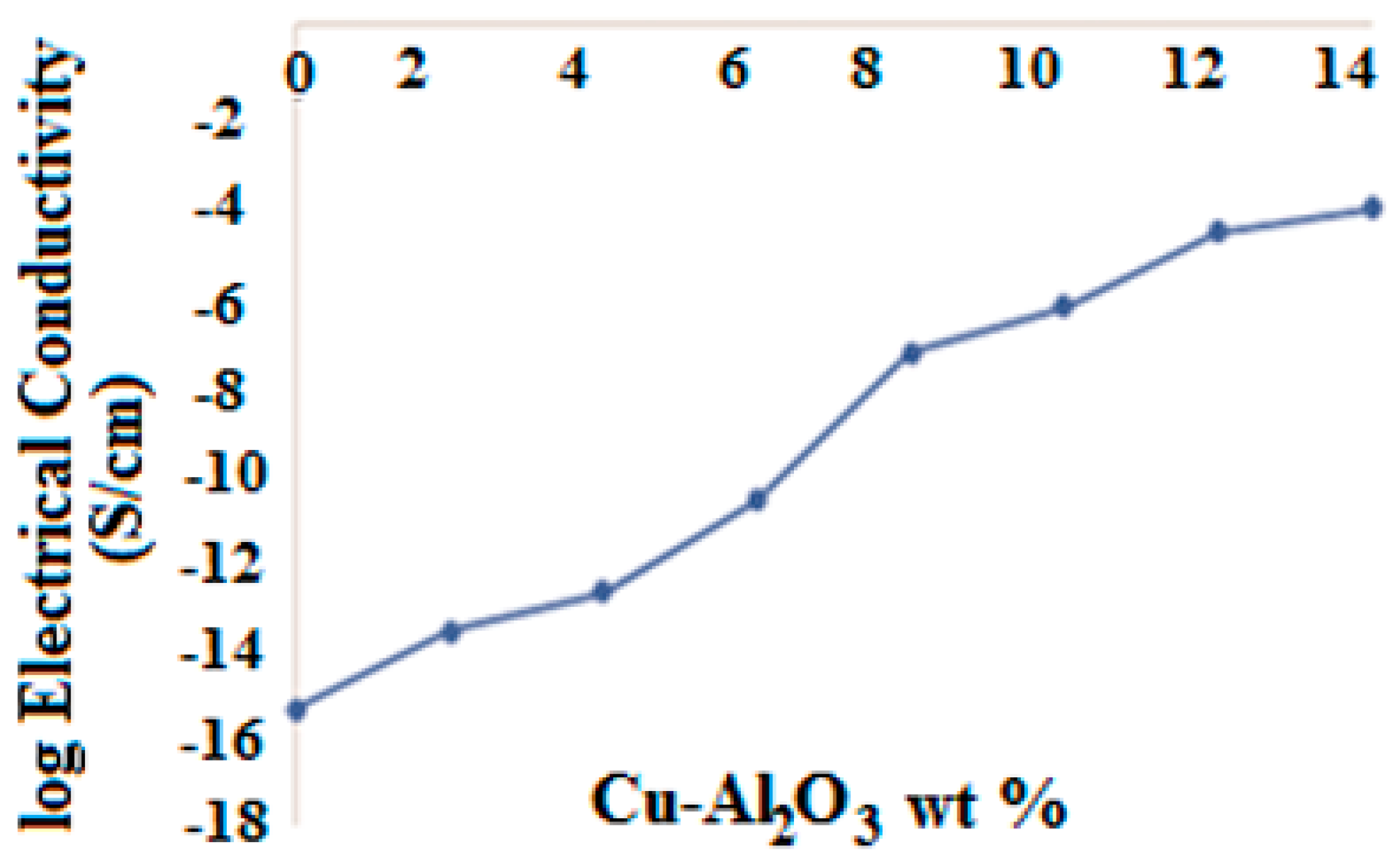 - Nadeem, Q.; Rizwan, M.; Gill, R.; Rafique, M.; Shahid, M. Fabrication of alumina based electrically conductive polymer composites. J. Appl. Polym. Sci. 2016, 133. [Google Scholar] [CrossRef]