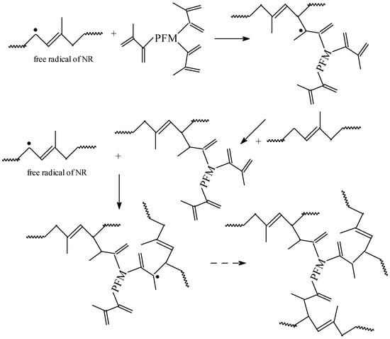 A possible reaction mechanism for the radiation cross-linking of NR with a Type II co-agent is summarized in Figure 6.