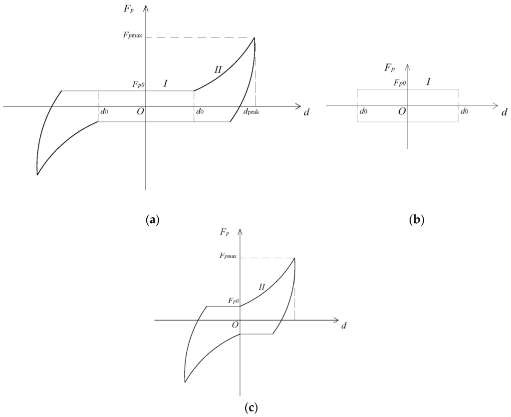 It is apparent that the hysteretic behaviour of DSP changes as the displacement increase. The typical full hysteretic loop for DSP can be assumed as in Figure 13a. There are three distinct stages of behaviour: